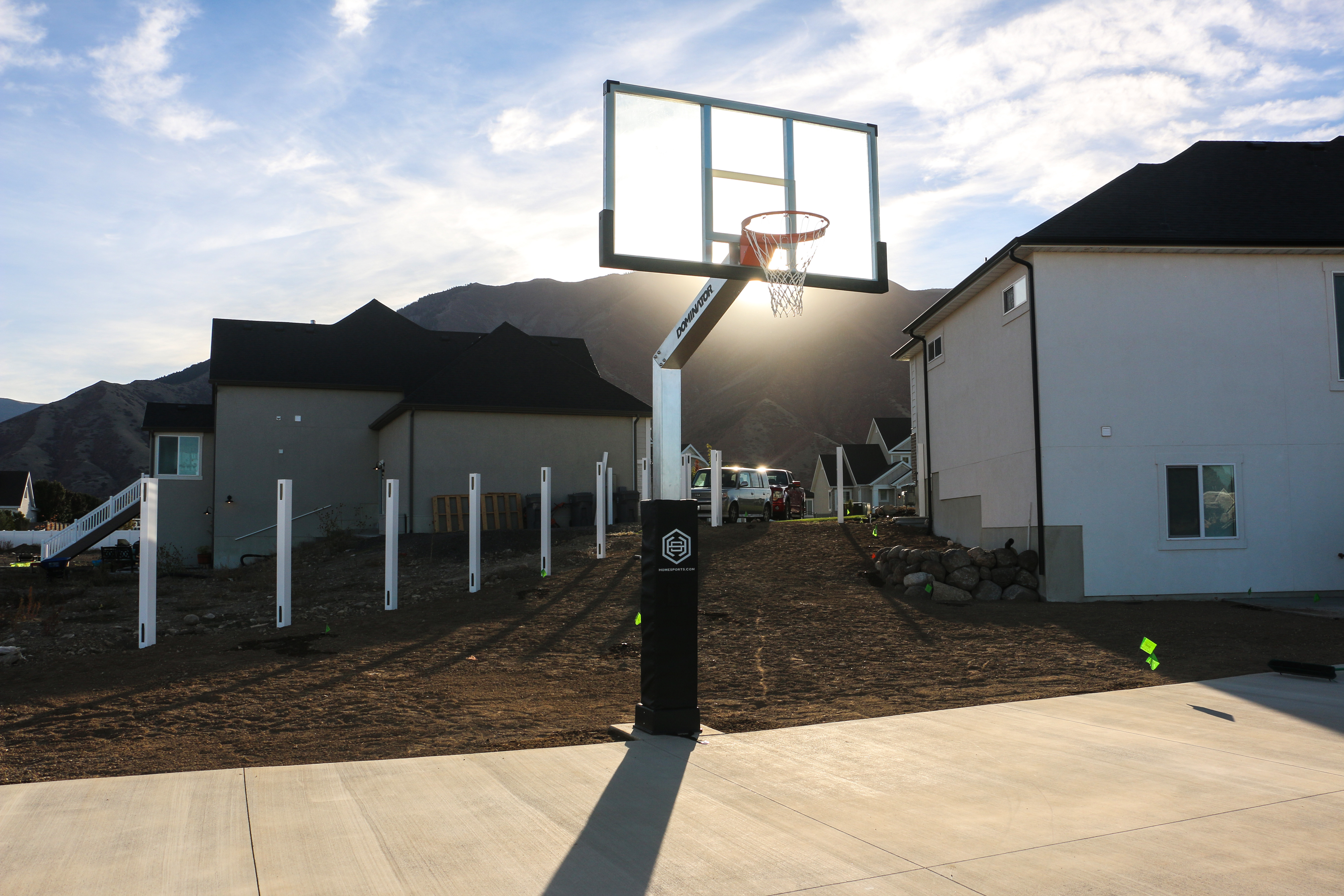 We recommend at least a 45' x 30' pad for a full three-point line. Plan your court →
